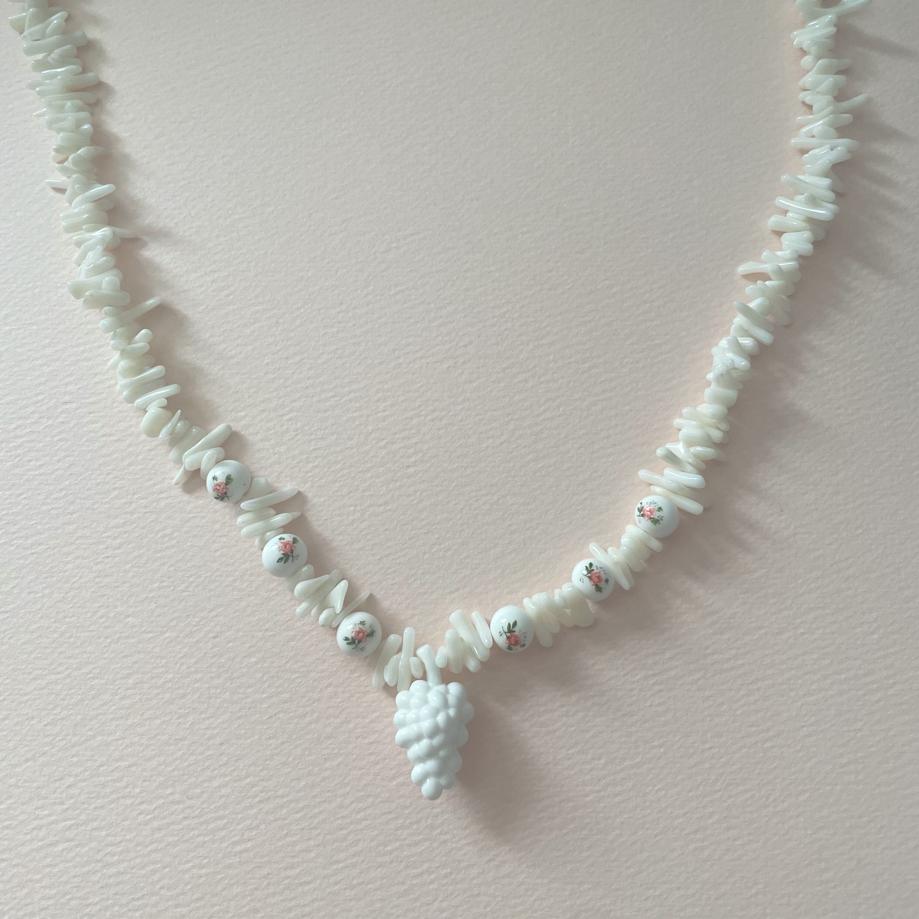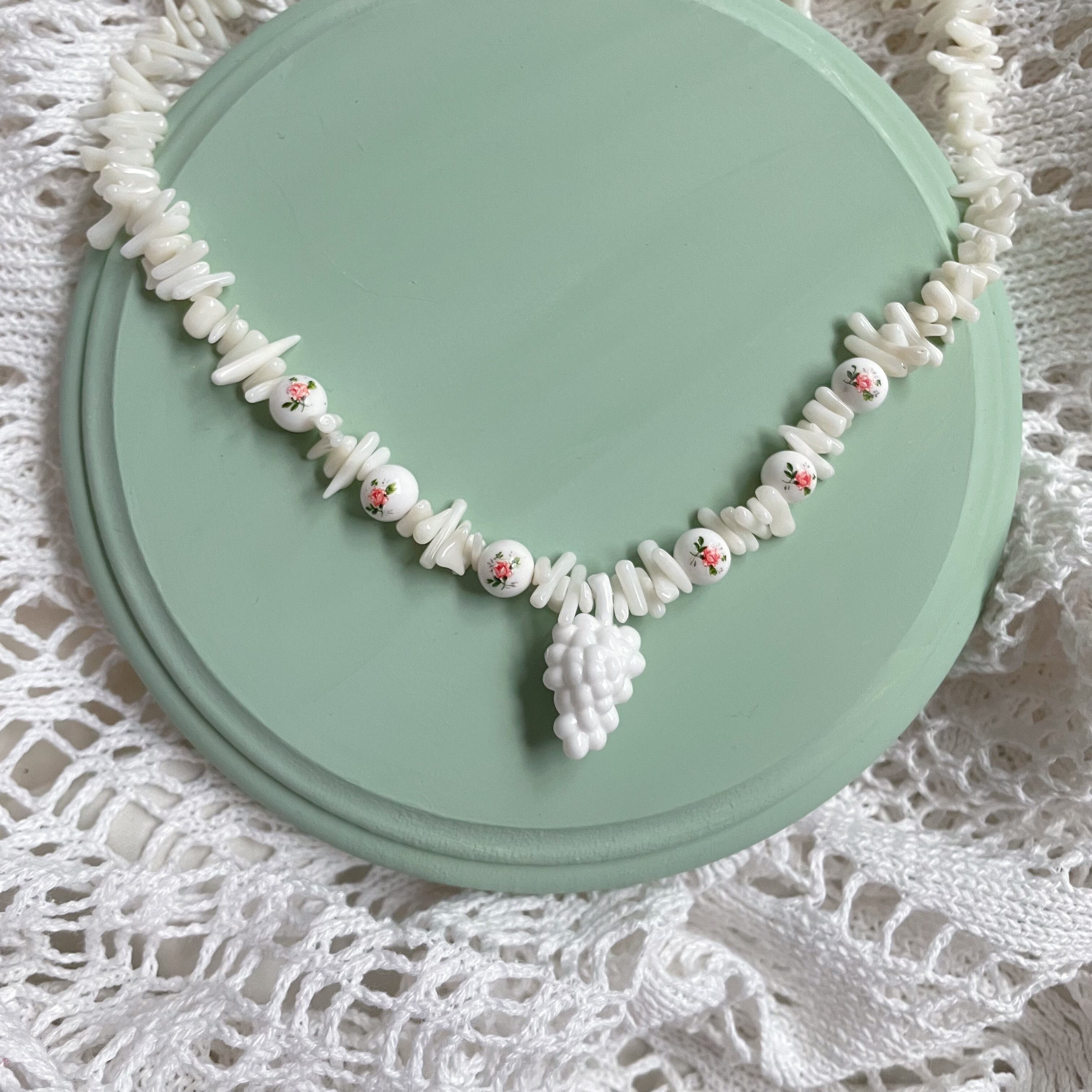 ※サンゴ・アンティークのグレープパーツ、ローズビーズを使用しております