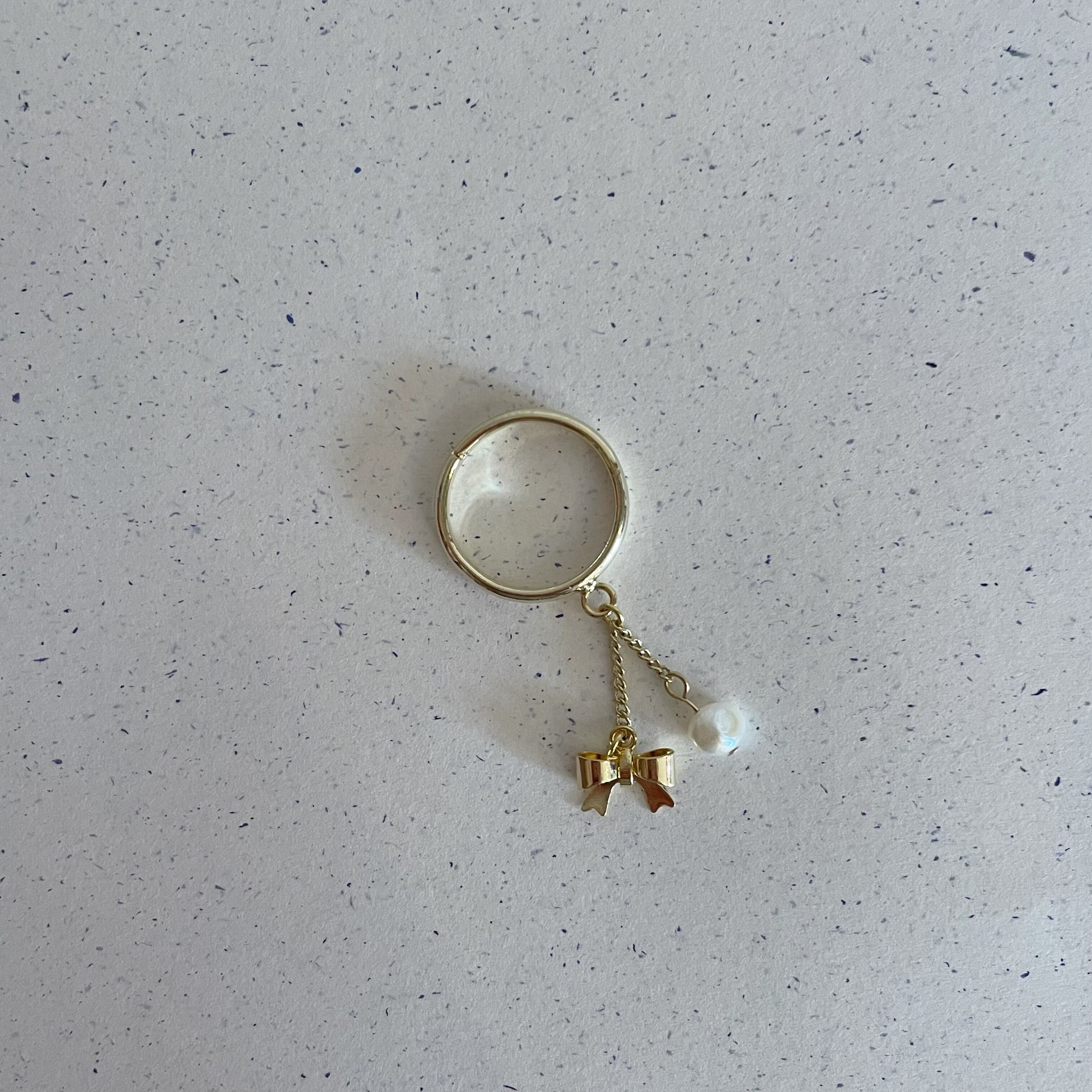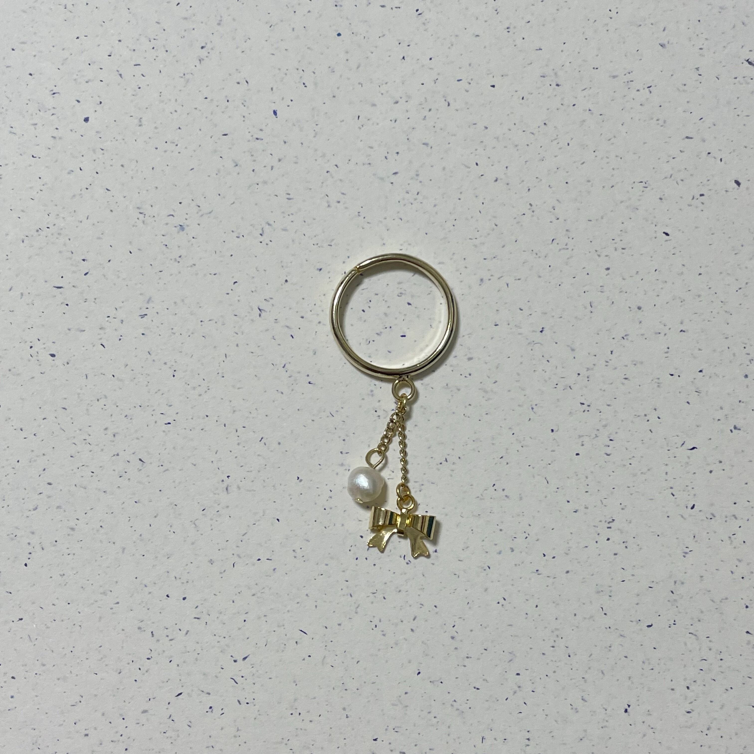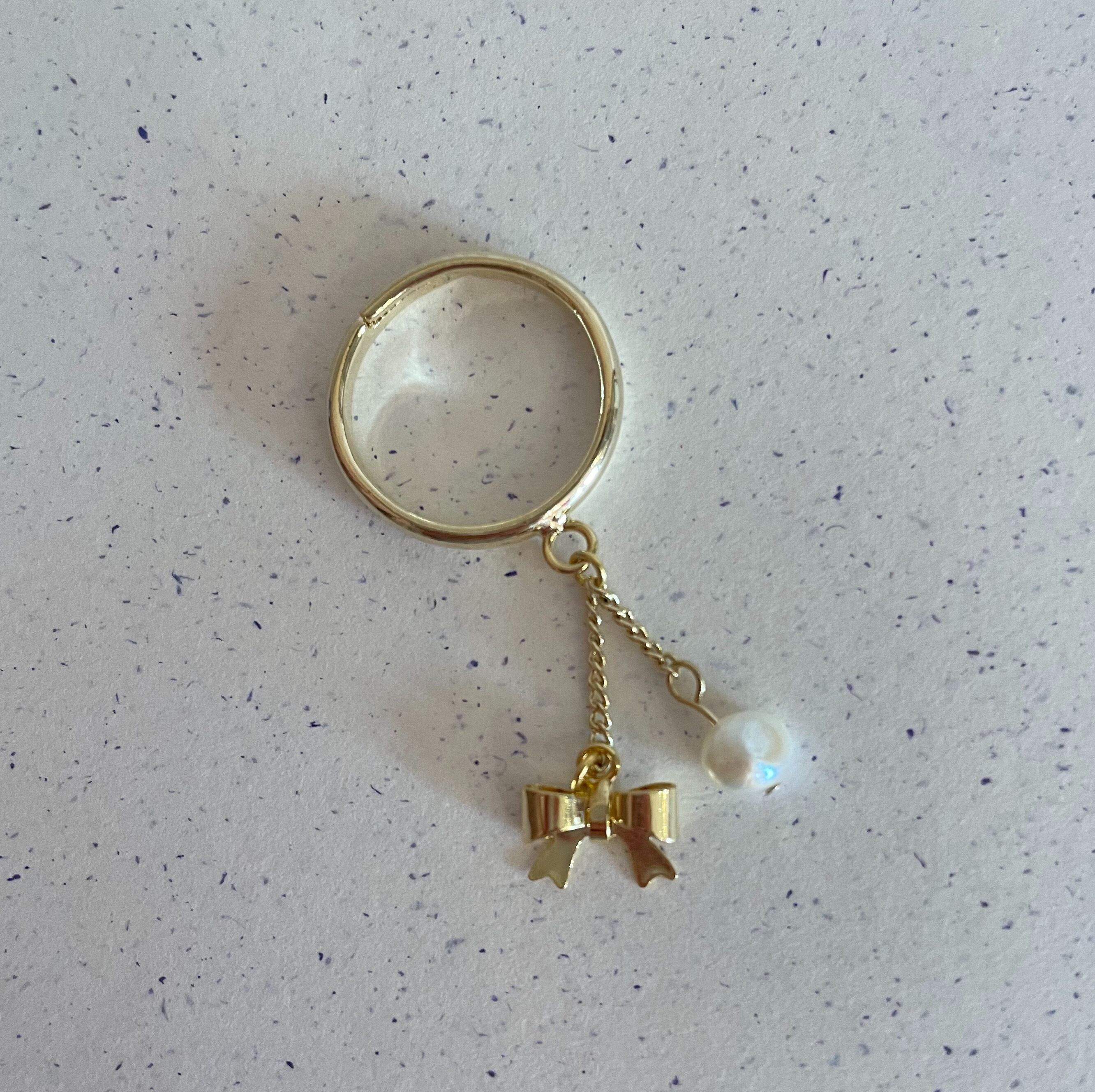 ゴールドリボン&淡水パールリング